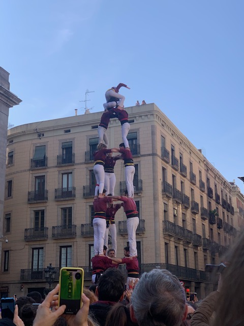 Castellers (human towers) are made up of teams of Catalans that climb on top of each other to compete to build the biggest ‘castle’. This was the most eye catching moment for me! They even had little kids around 6 or 7 years old participating in climbing these human towers. The amount of strength and balance to be able to do stunts like these are crazy and this is actually very traditional in Spain. I learned more from the culture and the atmosphere what a real local city felt like. I feel like we don’t get that a lot in the United States, many people just got to watch and they just leave. In Spain people were dancing with one another, clapping for their artists, asking for an encore, etc. I felt very welcomed and at home.